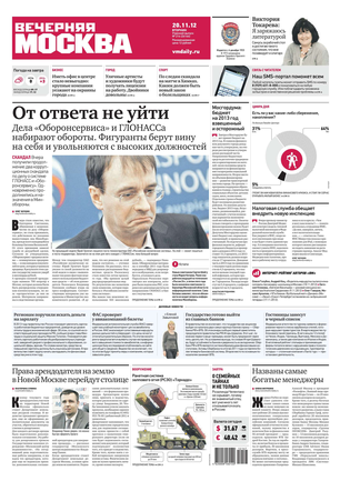 «Вечерняя Москва» — ежедневная российская вечерняя газета, старейшее из вечерних изданий в России, учрежденное в 1923 году. Выходит пять дней в неделю, кроме субботы и воскресенья. Отличается тем, что рассказывает о событиях еще не завершившегося дня. Оперативно освещает хронику и особенности жизни Москвы, охватывает все слои общества и большинство профессиональных и возрастных групп читателей.Издание представлено тремя выпусками – утренним ежедневным, вечерним (выходит три раза в неделю), еженедельным (выходит по четвергам).